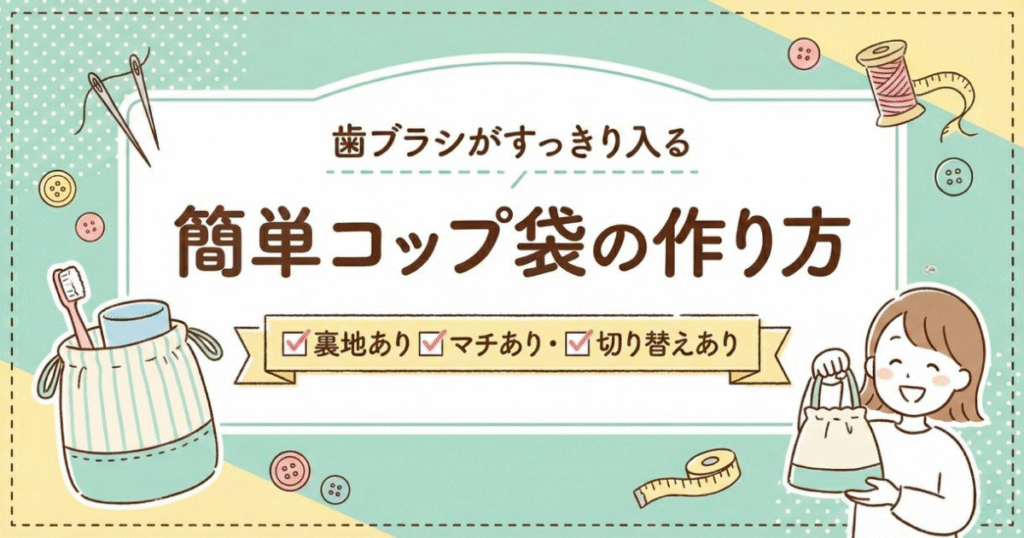 歯ブラシがすっきり入る!簡単コップ袋の作り方【裏地あり・マチあり・切り替えあり】