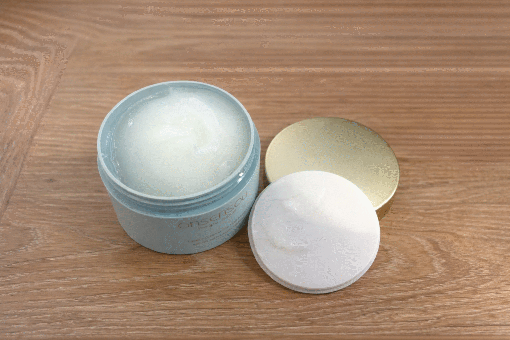 温泉の恵みをたっぷりと含んだヘアマスクで、シルクのような髪を取り戻せますように。