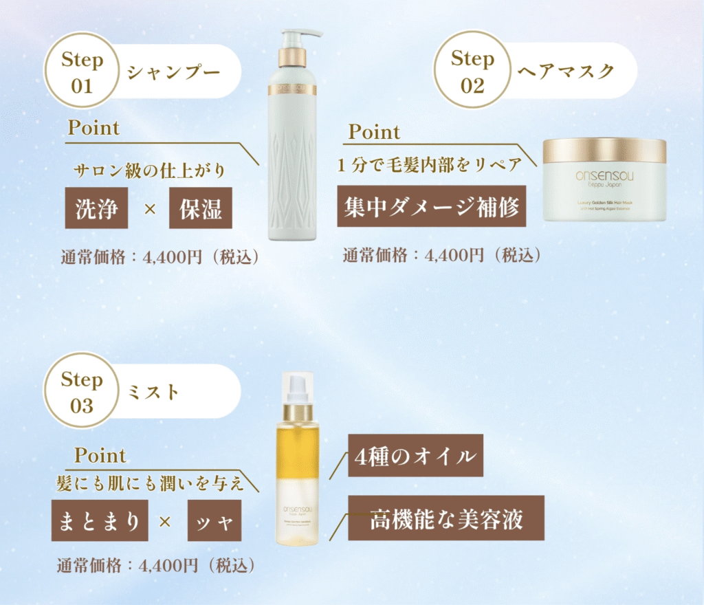 「ONSENSOU(オンセンソウ)」のリペアシリーズでした。